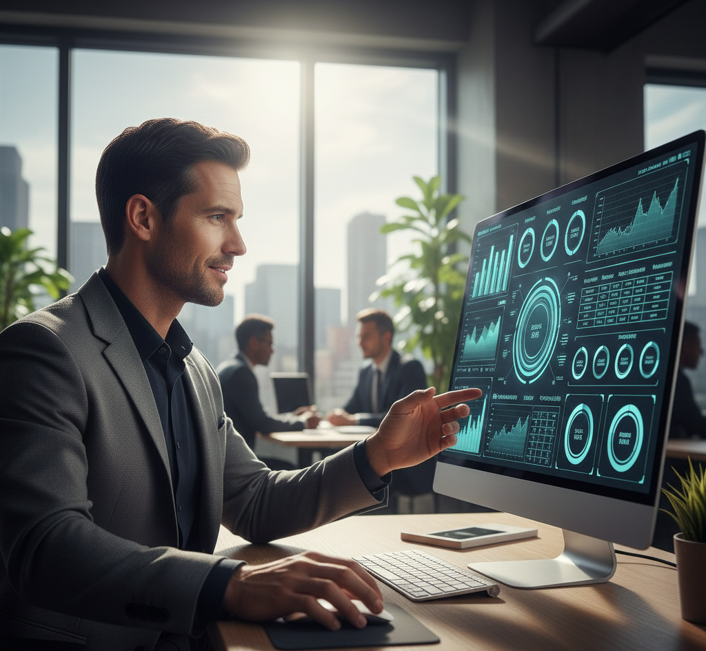 Vi utvikler kraftige, skreddersydde løsninger for forretningsstyringsprogramvare som er designet for å sentralisere og strømlinjeforme dine kjerneprosesser. Programvaren vår integrerer viktige funksjoner som prosjektstyring, ressursfordeling, økonomisk oppfølging, HR-prosesser og kundeadministrasjon i én intuitiv plattform.
